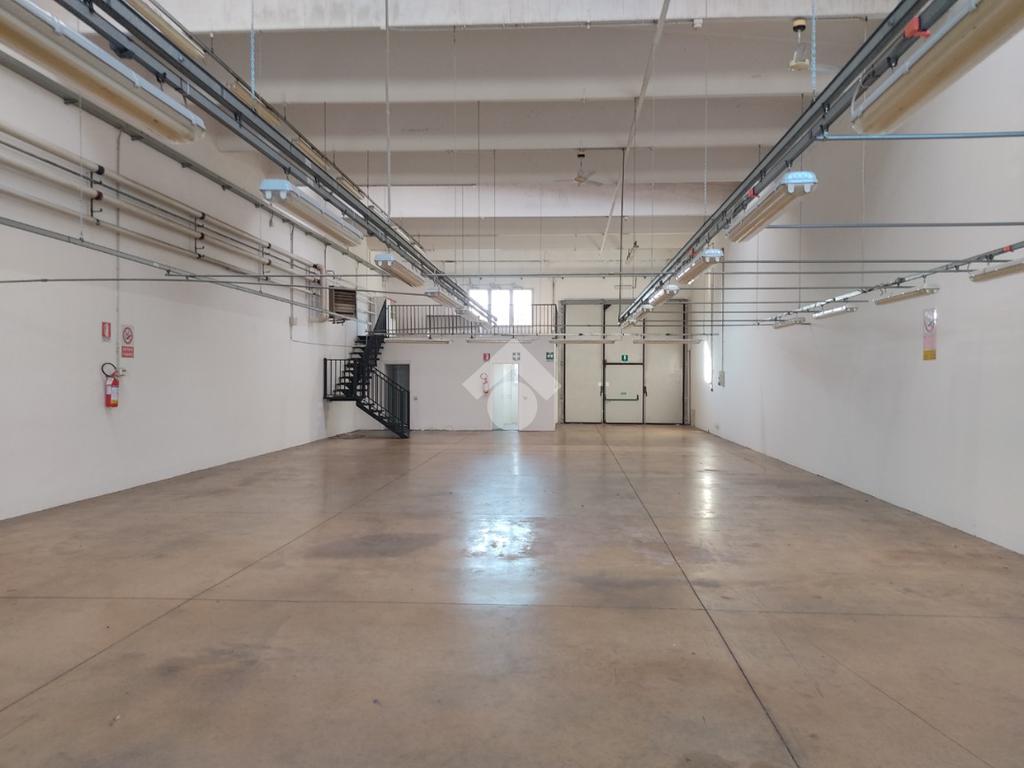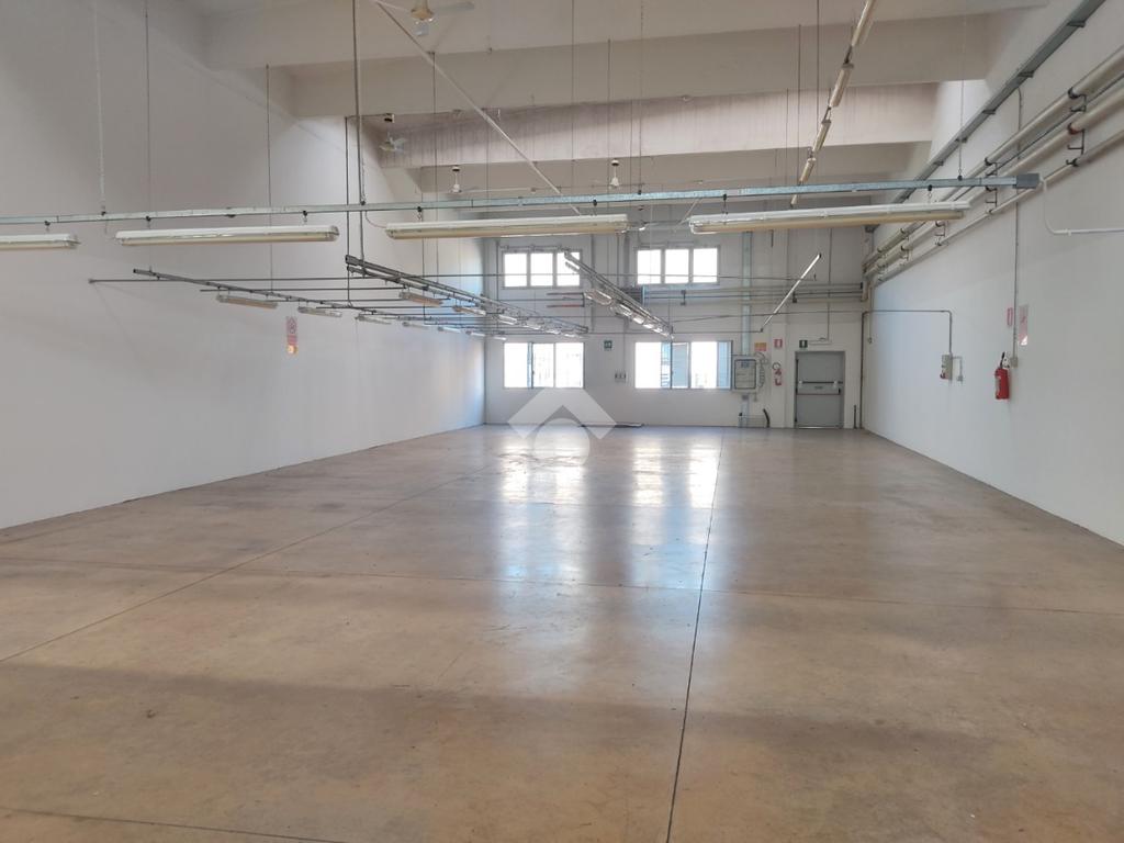Il capannone è costituito da unico ampio vano ad uso laboratorio con portone carrabile sul fronte, porta pedonale e finestre sul retro, doppi servizi igienici con docce e antibagni/spogliatoi, oltre a soppalco. L’immobile è dotato di agibilità sismica definitiva ed è provvisto d’impianto elettrico e d’illuminazione e riscaldamento centralizzato. Il fabbricato di cui fa parte il capannone è dotato d’impianto antincendio con anello servito da vasca d'accumulo d’acqua e gruppo di pressurizzazione, nonché di ampia area cortiliva condominiale. Disponibile da maggio 2026.