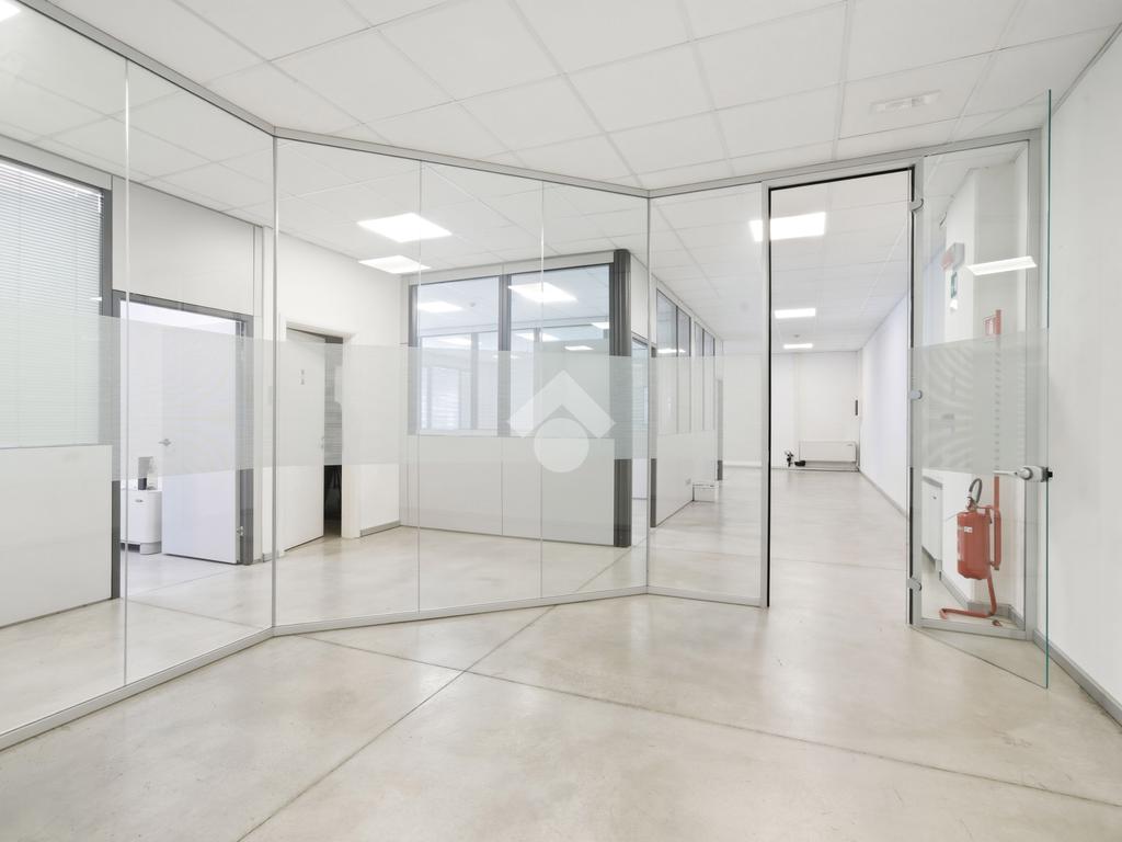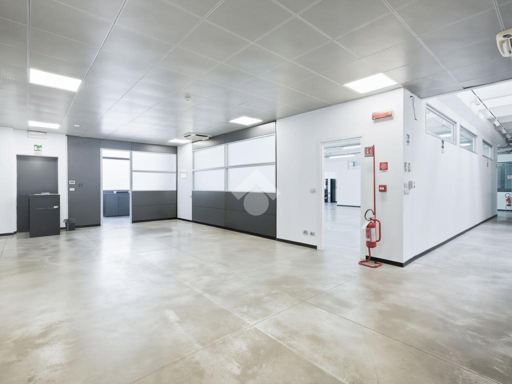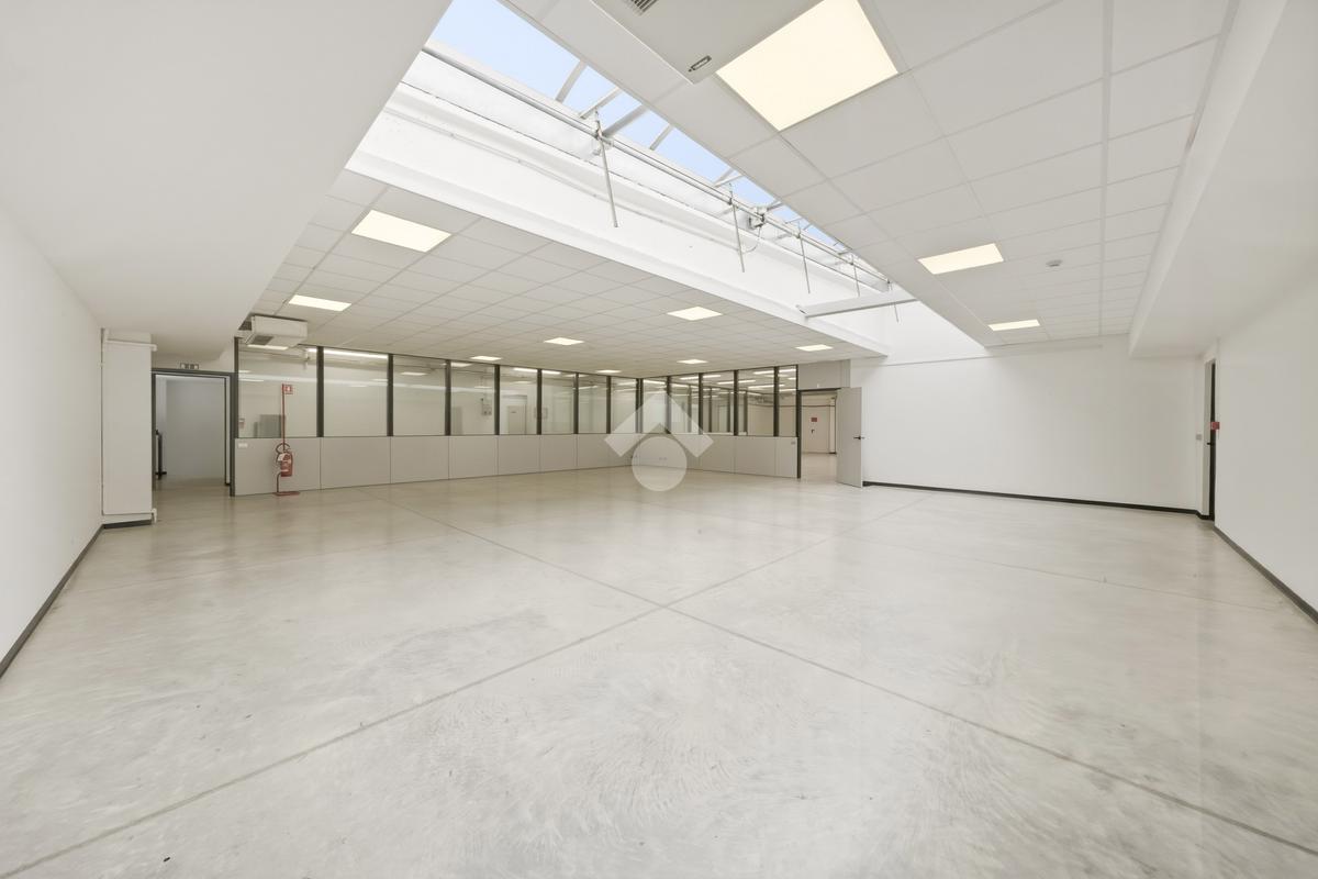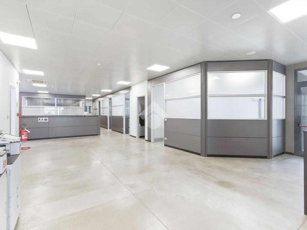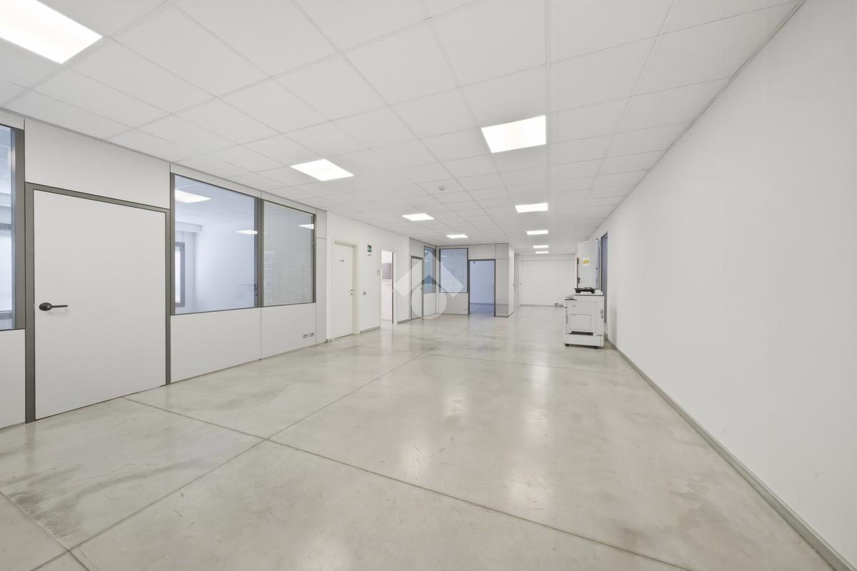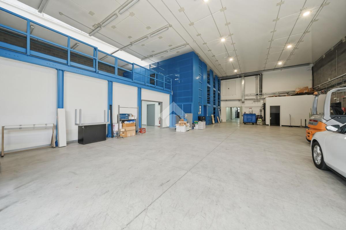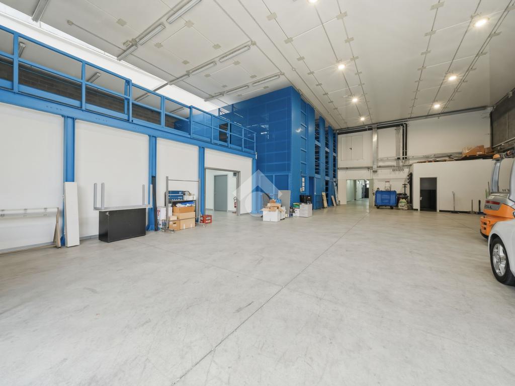 Il capannone, che si posiziona con affaccio diretto su via dell'Industria, di fatto una delle principali vie di accesso e deflusso della città e in particolare della zona industriale, direttamente collegata al casello autostradale sulla A22, gode di grande visibilità e facile raggiungibilità anche per mezzi pesanti. Situato su lotto indipendente di oltre 3.000 mq, è estremamente riconoscibile grazie all'estetica moderna, ben visibile grazie all'ampio fronte stradale occupato. Il lotto ha inoltre buona disponibilità di parcheggi, accesso per i mezzi ed anche aree verdi. Edificato nei primi anni 2000, è disposto quasi interamente su due livelli. Al piano terra troviamo circa 1.300 mq, di cui 500 mq di magazzino ottimamente attrezzato con scaffalature strutturali su due piani. I restanti 800 mq circa, sono composti principalmente da uffici dall'ottimo impatto estetico, grazie a pavimenti in ceramica e divisorie vetrate. Al piano primo dispone di circa 800 mq, di cui 190 mq di appartamento (che può essere incluso/escluso dalla locazione), oltre a spazi mensa, spogliatoi, ampia area campionario di oltre 200 mq e ulteriori uffici per circa 200 mq. L'immobile è completo di climatizzazione, impianto elettrico e di illuminazione e presidi antincendio.