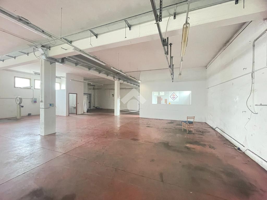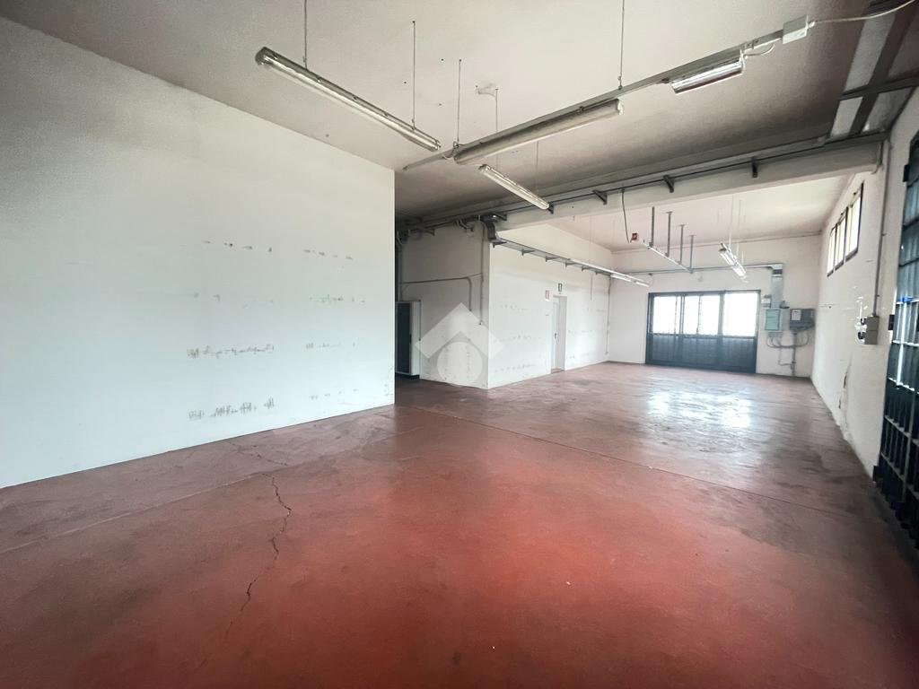 Il capannone, che misura in totale 800 mq circa, si sviluppa su due livelli con buone proporzioni tra area produttiva ed uffici. Al pian terreno troviamo il laboratorio di 500 mq circa, servito da due portoni carrabili con affaccio sull’area cortiliva, un vano ufficio e due servizi igienici.