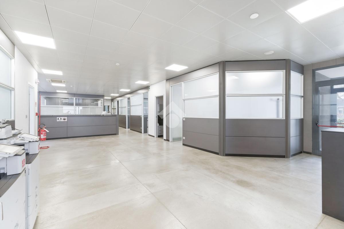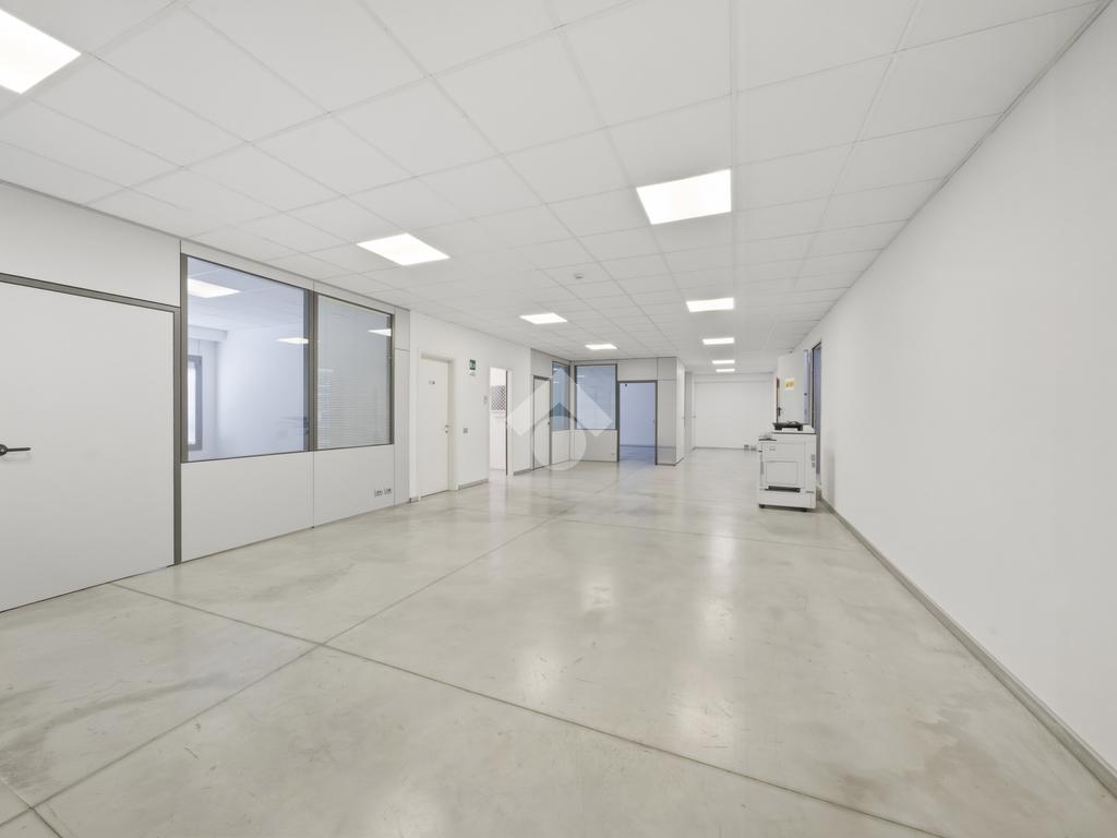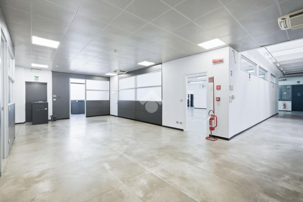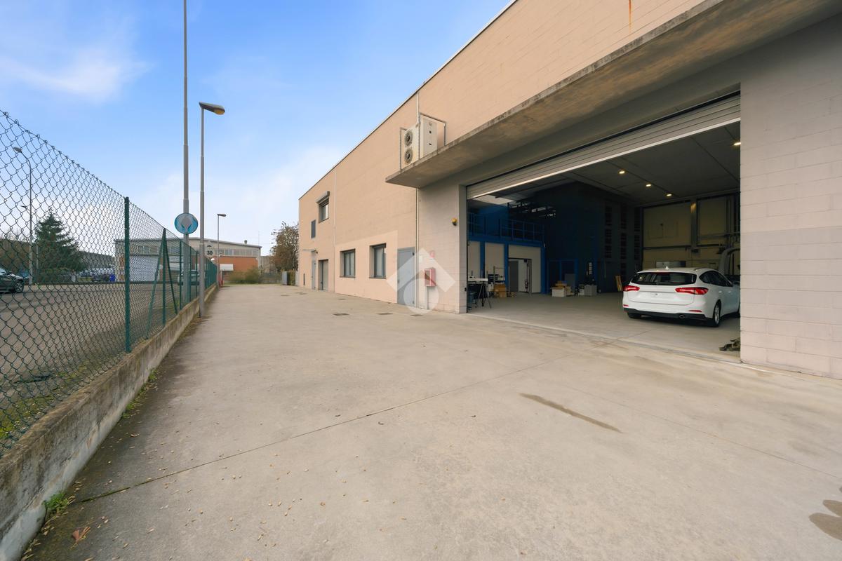 Il capannone, che si posiziona con affaccio diretto su via dell'Industria, di fatto una delle principali vie di accesso e deflusso della città e in particolare della zona industriale, direttamente collegata al casello autostradale sulla A22, gode di grande visibilità e facile raggiungibilità anche per mezzi pesanti. Situato su lotto indipendente di oltre 3.000 mq, è estremamente riconoscibile grazie all'estetica moderna, ben visibile grazie all'ampio fronte stradale occupato. Il lotto ha inoltre buona disponibilità di parcheggi, accesso per i mezzi ed anche aree verdi. Edificato nei primi anni 2000, è disposto quasi interamente su due livelli. Al piano terra troviamo circa 1.300 mq, di cui 500 mq di magazzino ottimamente attrezzato con scaffalature strutturali su due piani. I restanti 800 mq circa, sono composti principalmente da uffici dall'ottimo impatto estetico, grazie a pavimenti in ceramica e divisorie vetrate. Al piano primo dispone di circa 800 mq, di cui 190 mq di appartamento (che può essere incluso/escluso dalla locazione), oltre a spazi mensa, spogliatoi, ampia area campionario di oltre 200 mq e ulteriori uffici per circa 200 mq. L'immobile è completo di climatizzazione, impianto elettrico e di illuminazione e presidi antincendio.