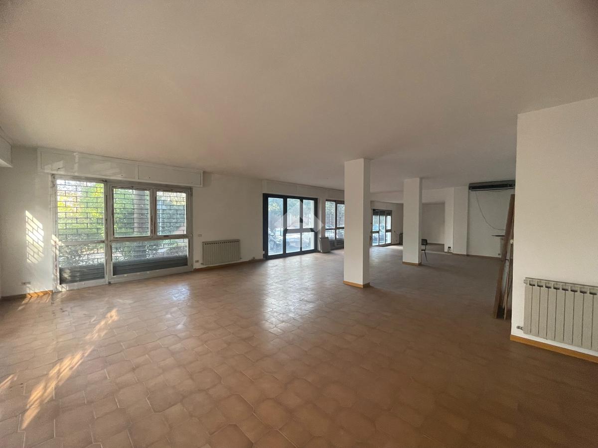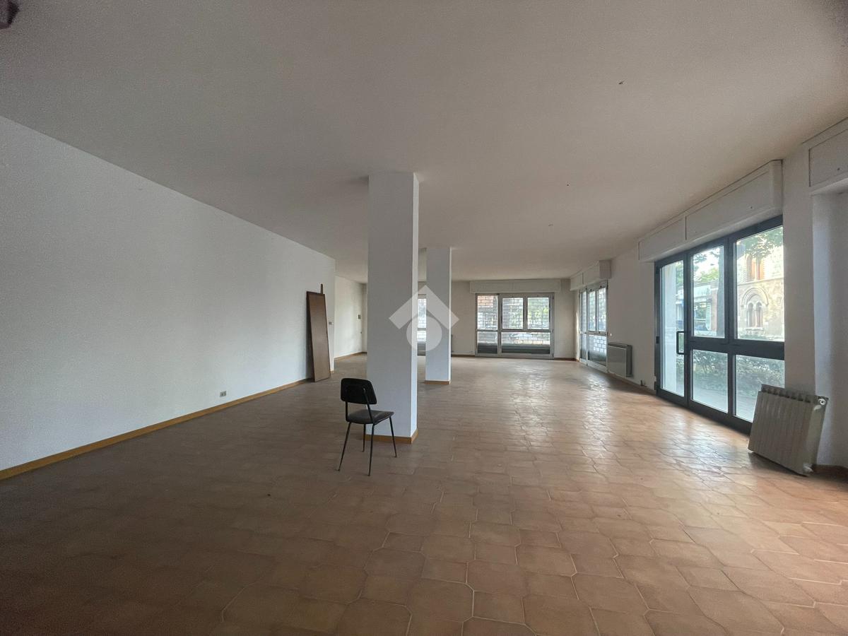 Ufficio con quattro vetrine fronte viale de Amicis, due vetrine fronte via Petrarca e piccola vetrina sul retro. Immobile in buono stato d’uso, attualmente composto di vano unico open space con doppi servizi e relativi antibagni e dotato di parcheggio condominiale sul retro. La disponibilità dei locali è immediata.